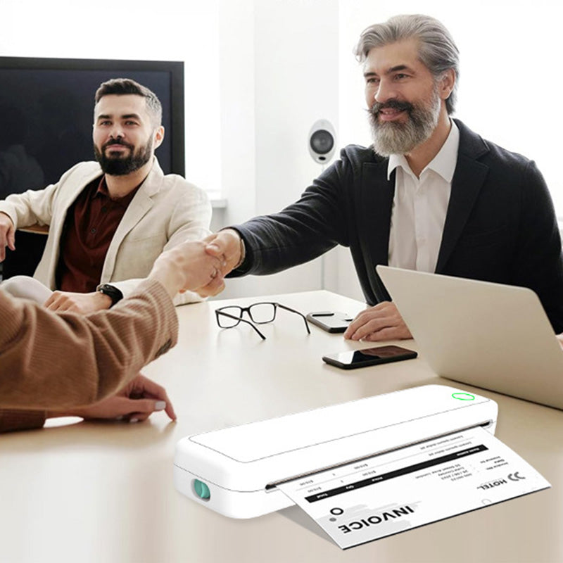 KOMPAKT OCH BÄRBAR DESIGN: Denna A4 mini-termoskrivare är ultrakompakt och lätt, vilket gör den enkel att bära med sig. Den bärbara storleken passar perfekt i handväskor och är perfekt för utskrifter på jobbet eller när du är på språng.